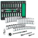 - Tools Include: 1/2" Drive 216-position ratchet, 3" & 5" extensions, and universal joint.